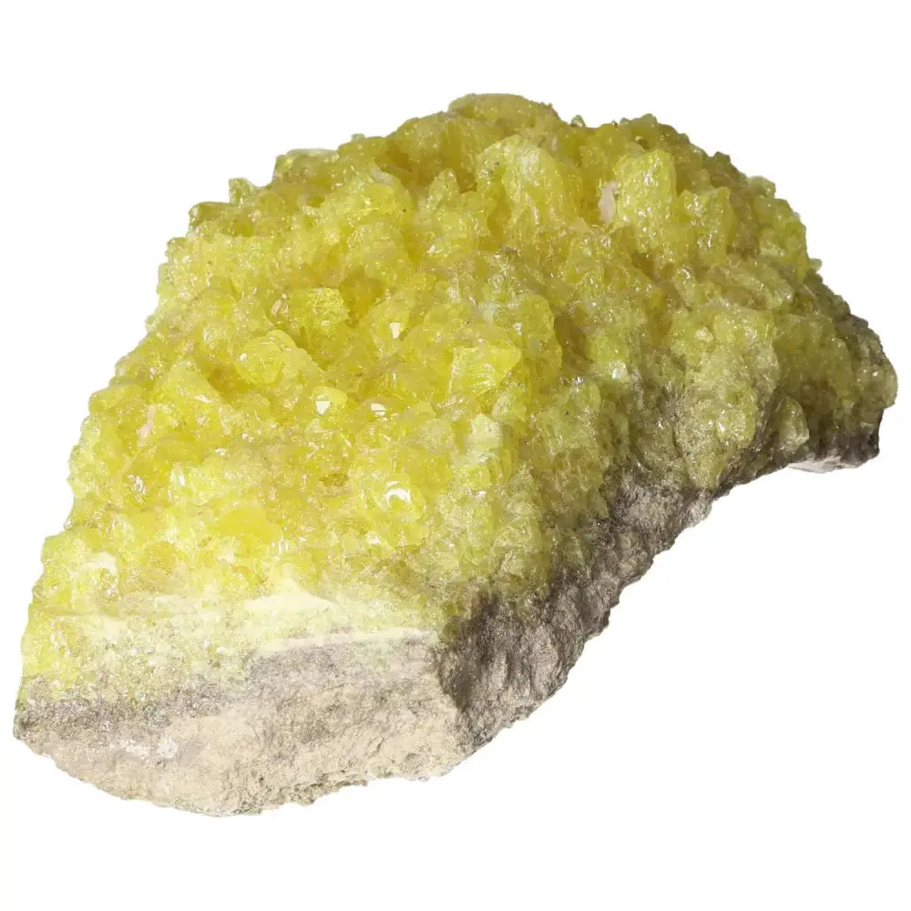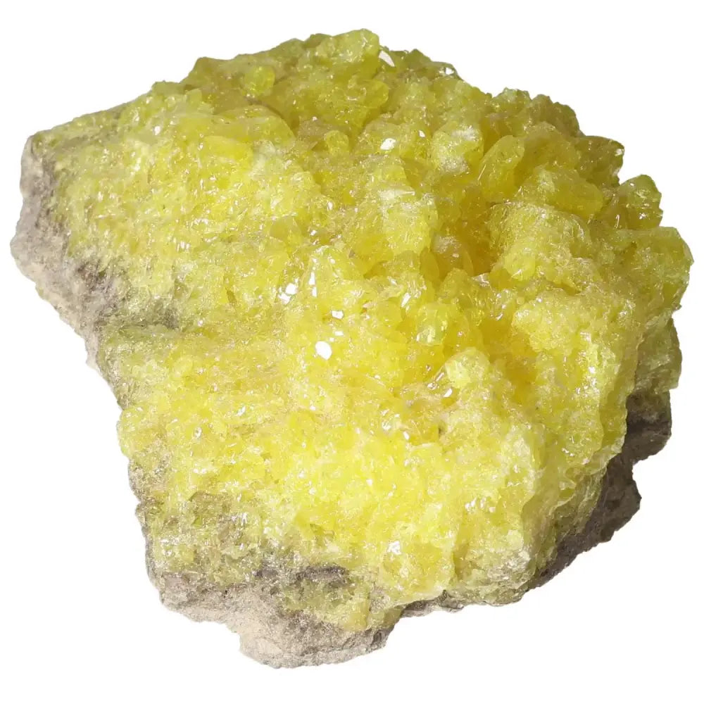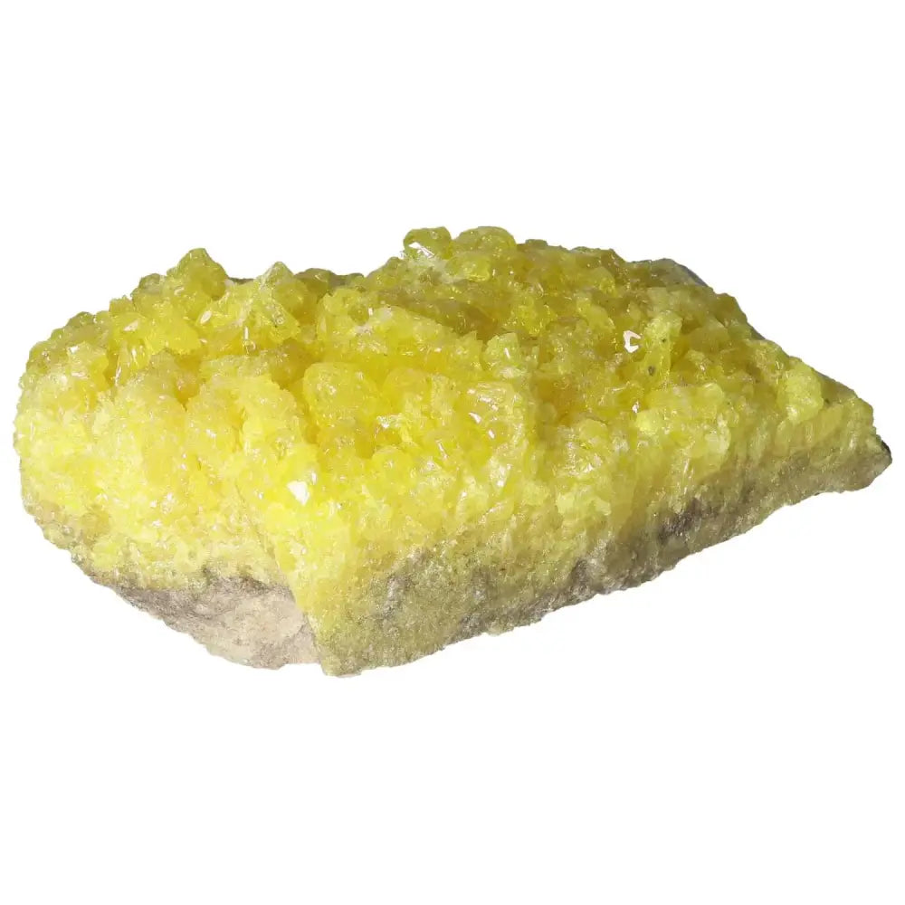 Rough Sulphur Druze with vibrant yellow crystal surface, perfect for spiritual enhancement, offered by Sylvia Crystals.