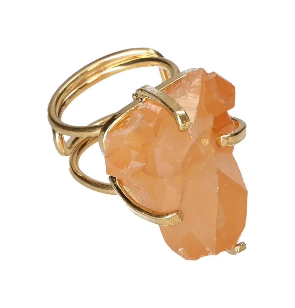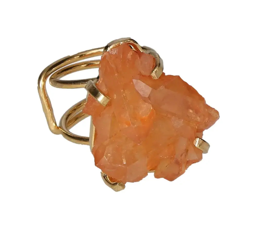 Silver Arc Ring with Tangerine Quartz Cluster – Creativity and Energizing Light 596862 P25