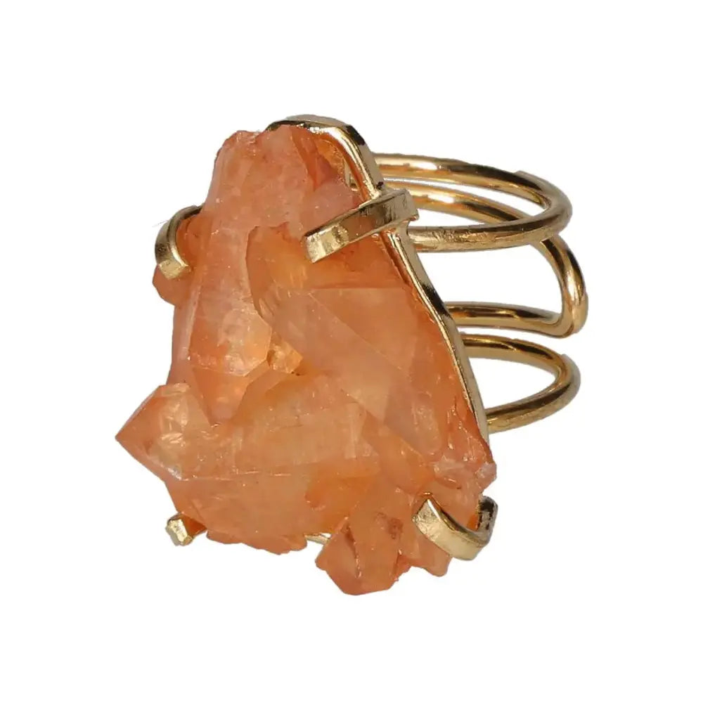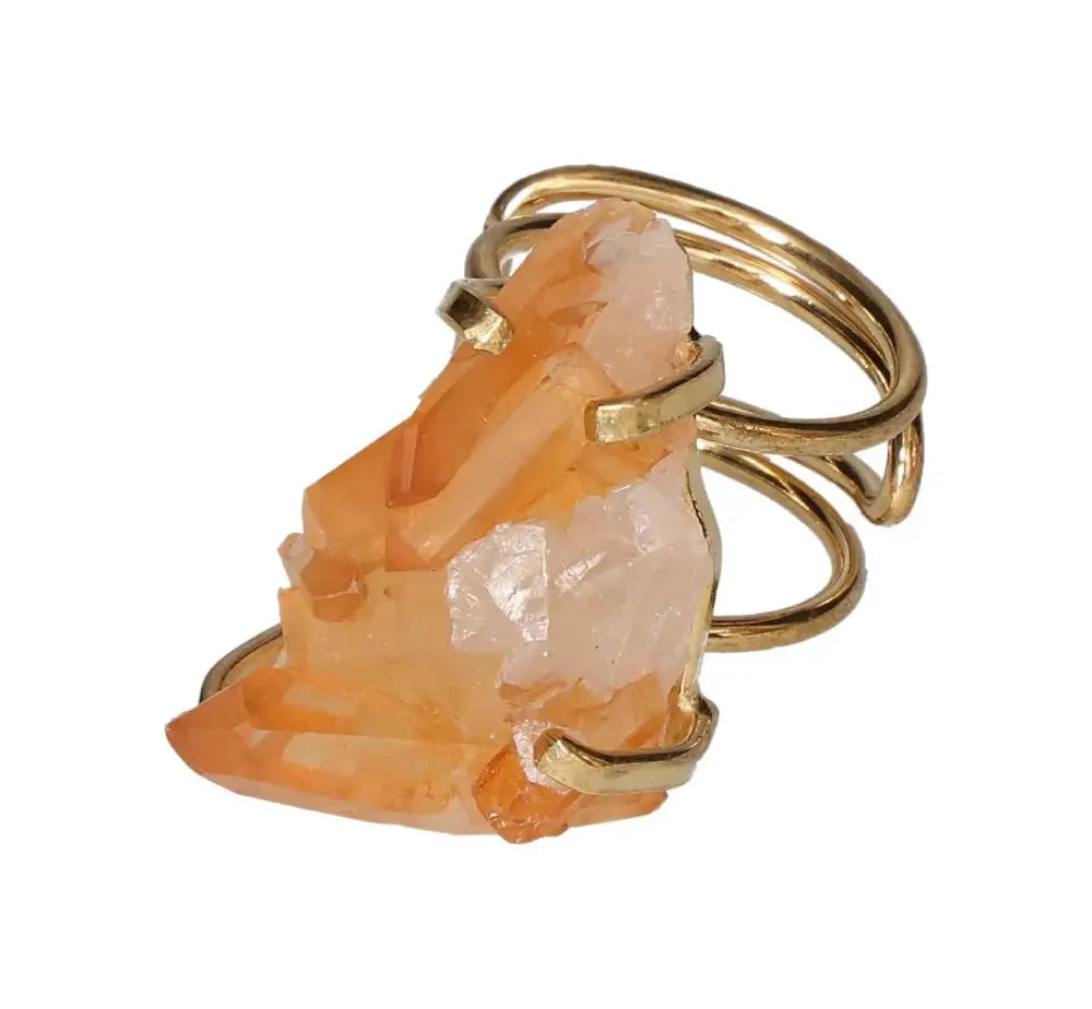 Gold Wire Ring with Tangerine Quartz Cluster Arc – Creativity and Bold Light 596817 P25
