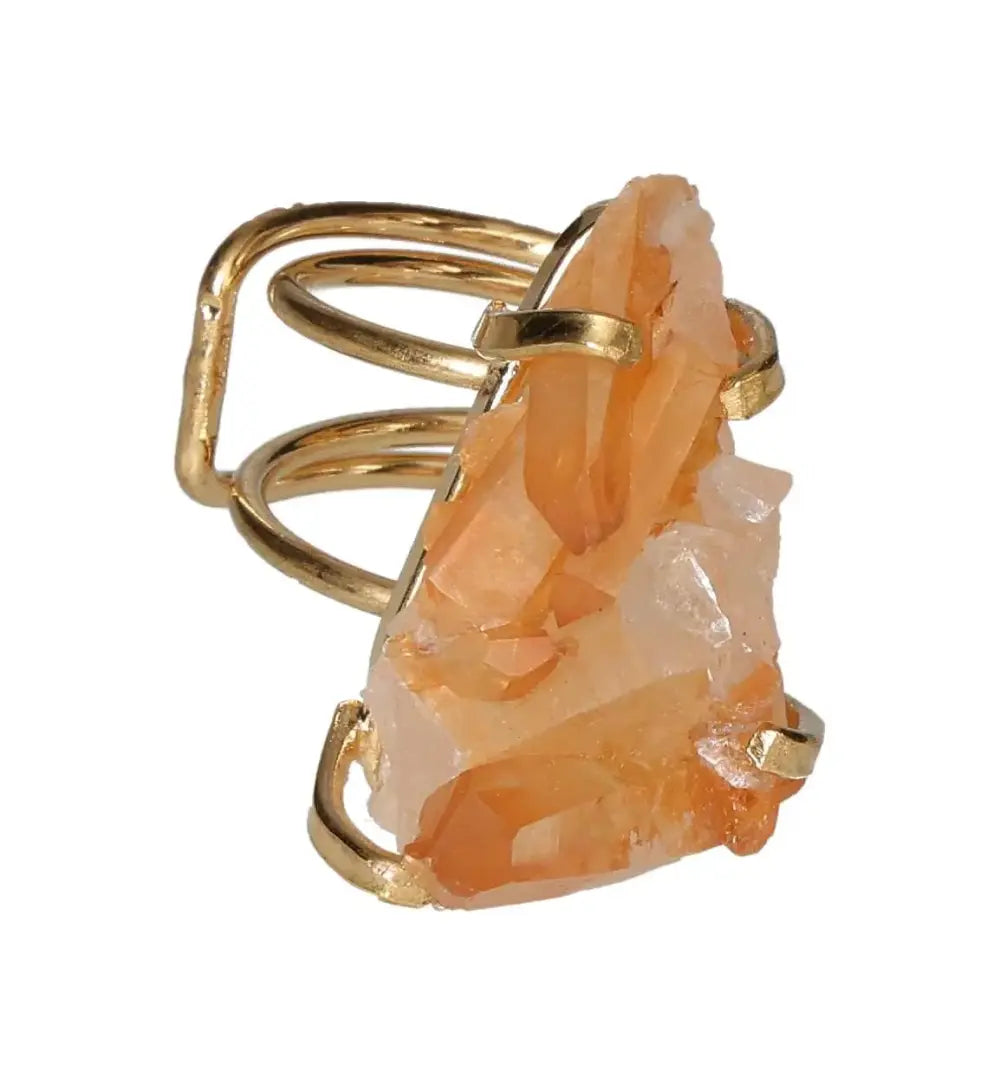 Gold Wire Ring with Tangerine Quartz Cluster Arc – Creativity and Bold Light 596855 P25