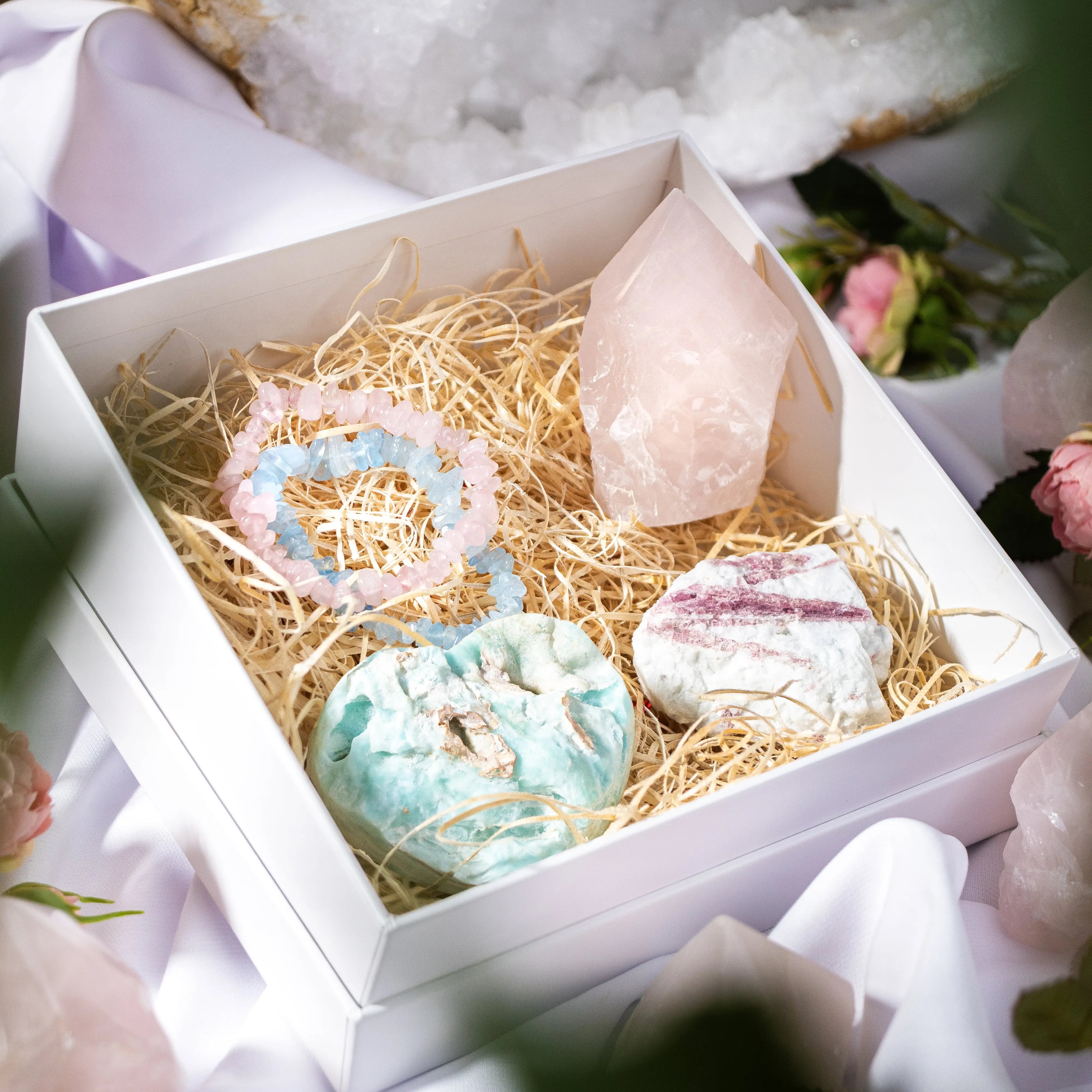 Celebrate each day with elegantly curated gift boxes featuring a selection of radiant stones and crystals, each chosen to inspire strength, love, and harmony. From the soothing energy of rose quartz to the empowering presence of amethyst and the cleansing glow of selenite, these thoughtfully arranged sets make meaningful and beautiful gifts. Perfect for honoring the special person in your life with a touch of natural beauty and positive energy.