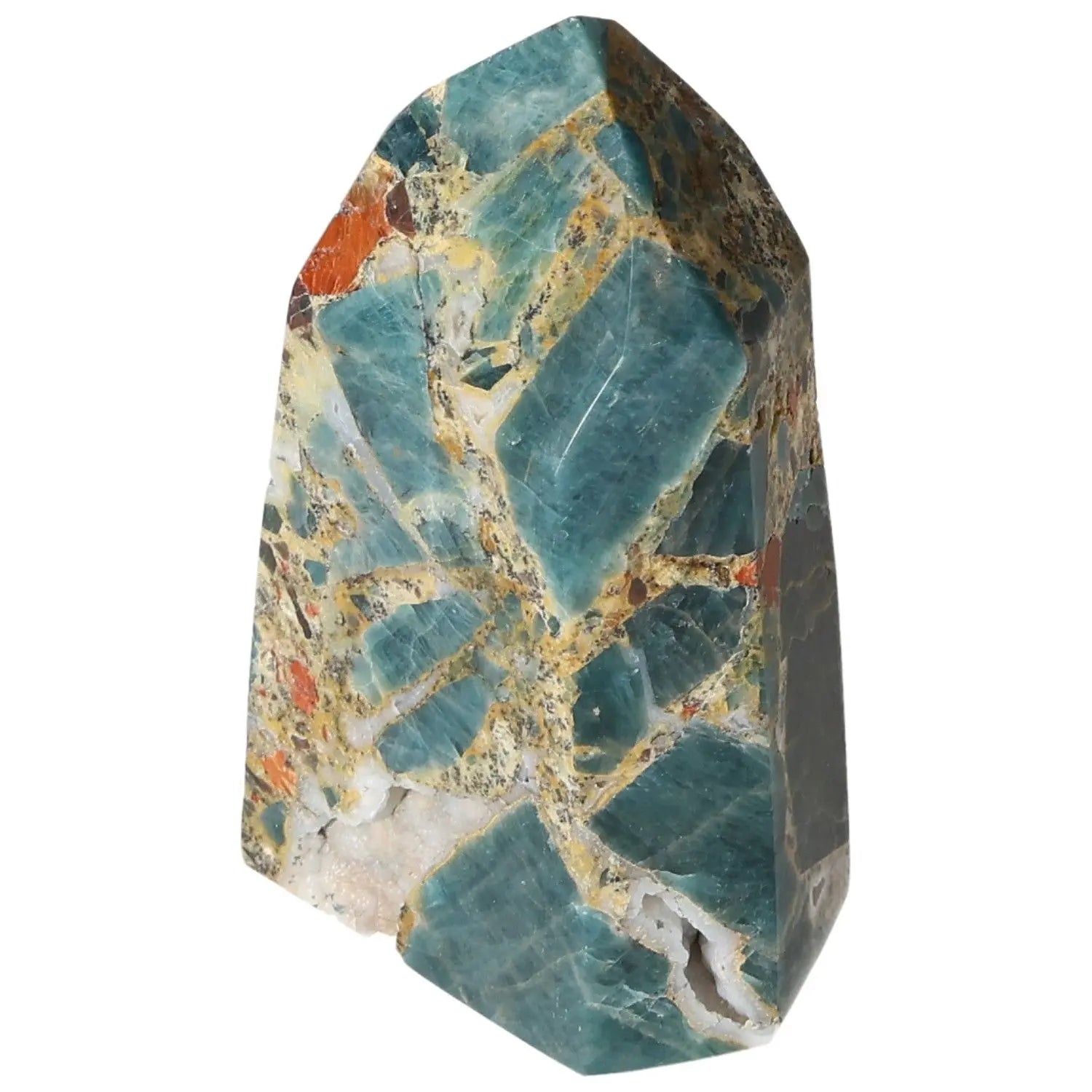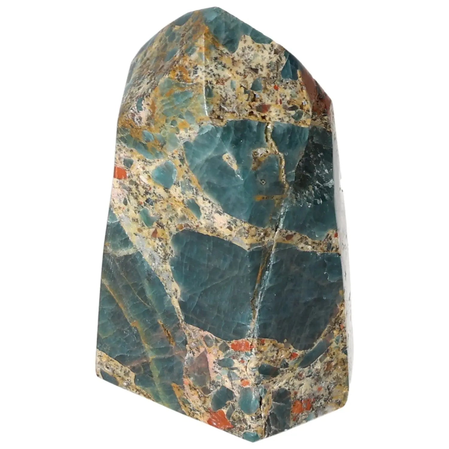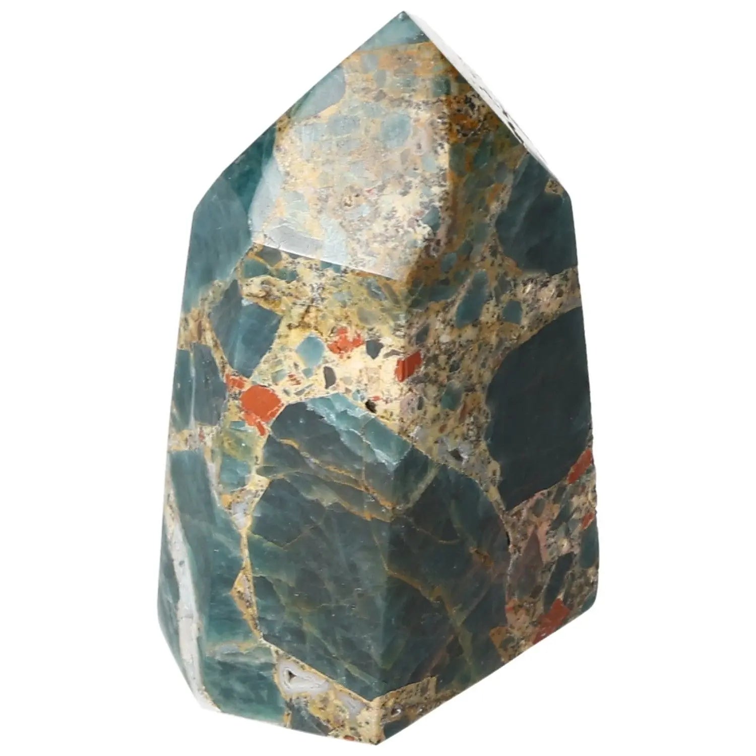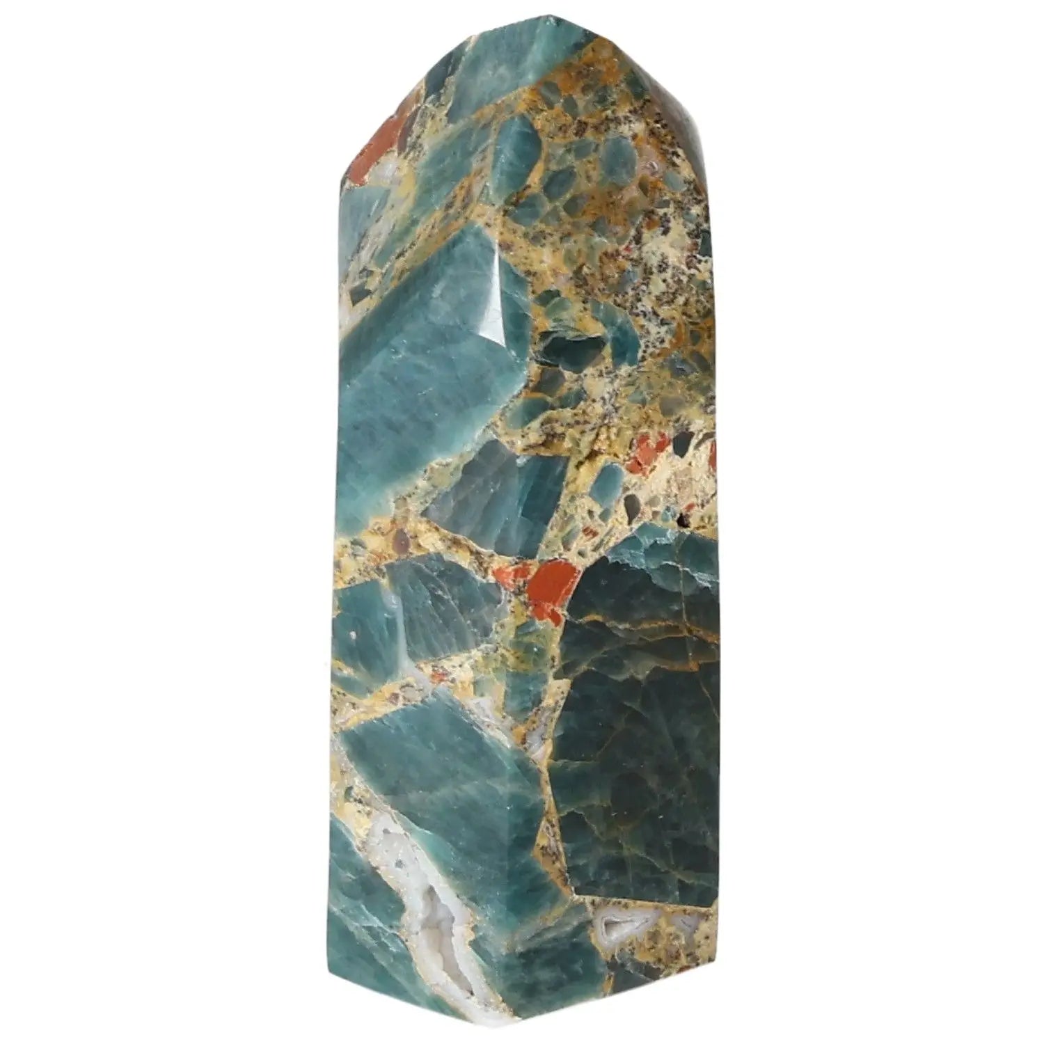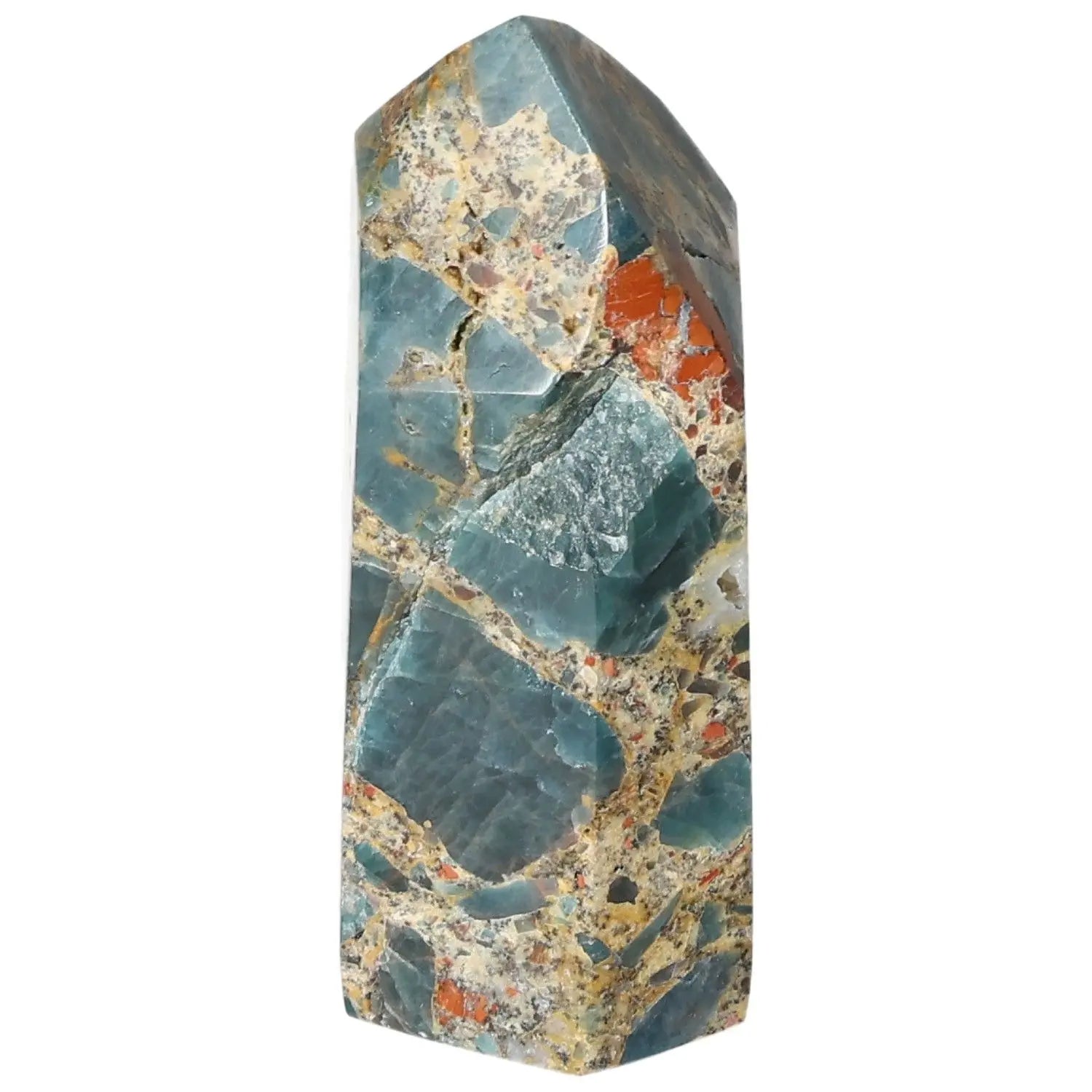 Apatite Obelisk from Sylvia Crystals, showcasing vibrant colors and unique patterns, symbolizing style and spirituality.