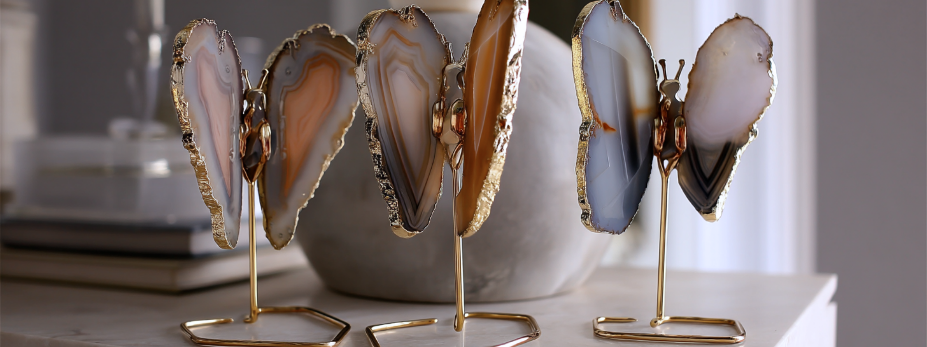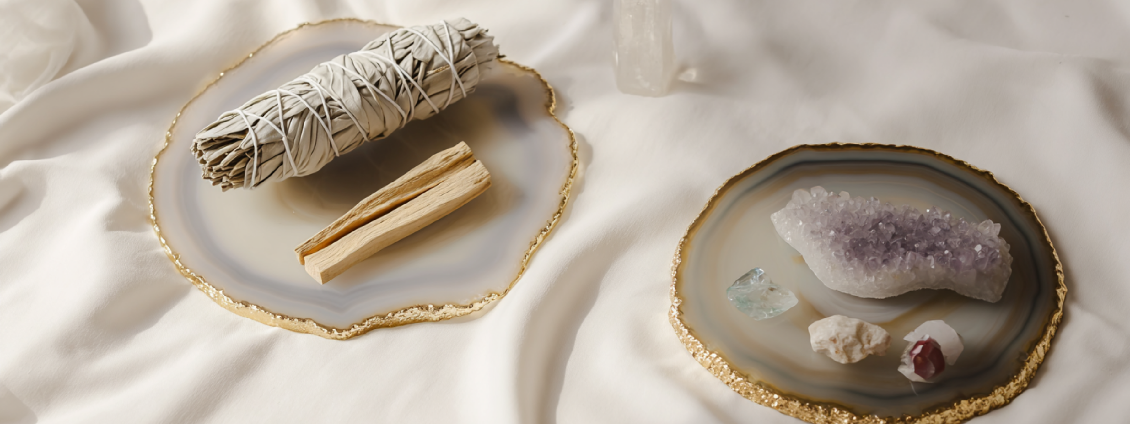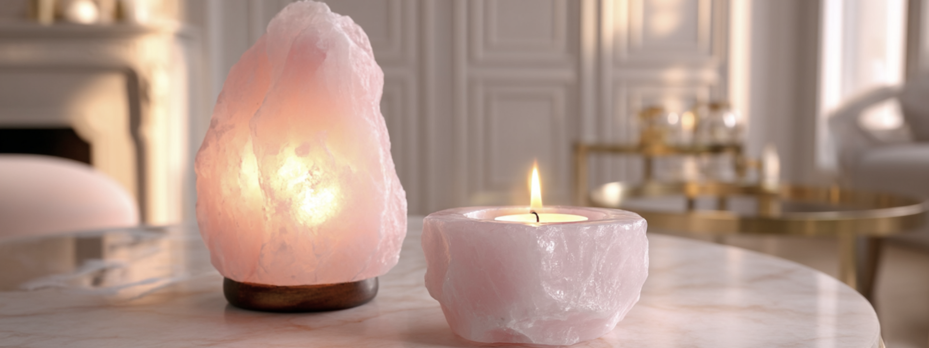 Crystals shaped into luminous objects that calm the space and elevate the atmosphere.