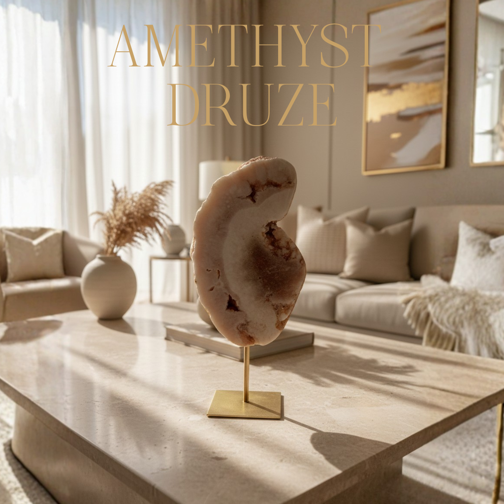 Ametist s duginom aurom na metalnom postolju