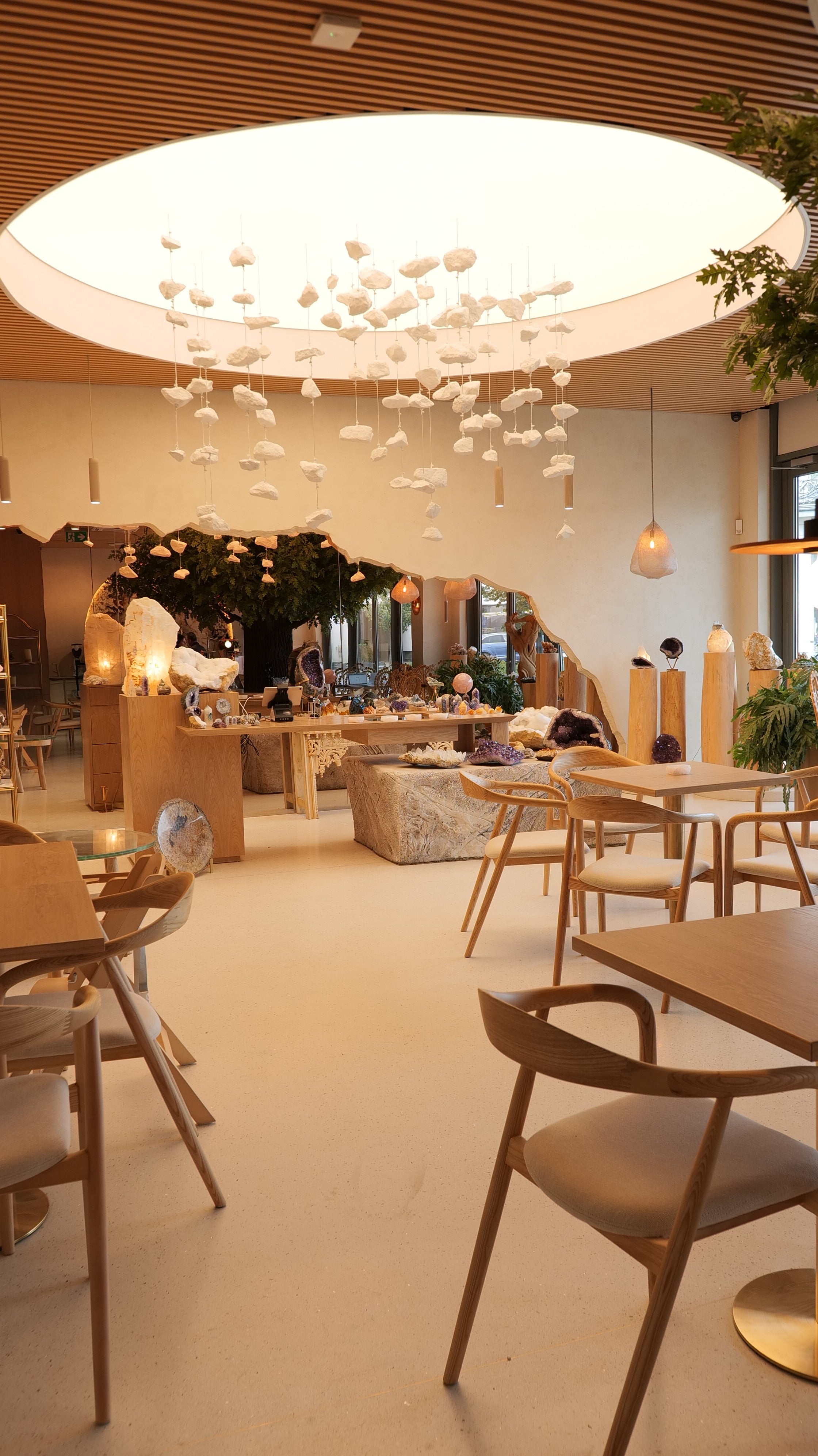 SYLVIA Crystal Café redefines the concept of public spaces, blending modern design with the beauty of nature. Created by Sylwia Romaniuk, a visionary and designer, it reflects her passion for crafting inspiring places that support spiritual growth and celebrate the wonders of the natural world. It is the world’s first café where the energy of crystals aligns with care for human well-being, offering a truly unique experience.