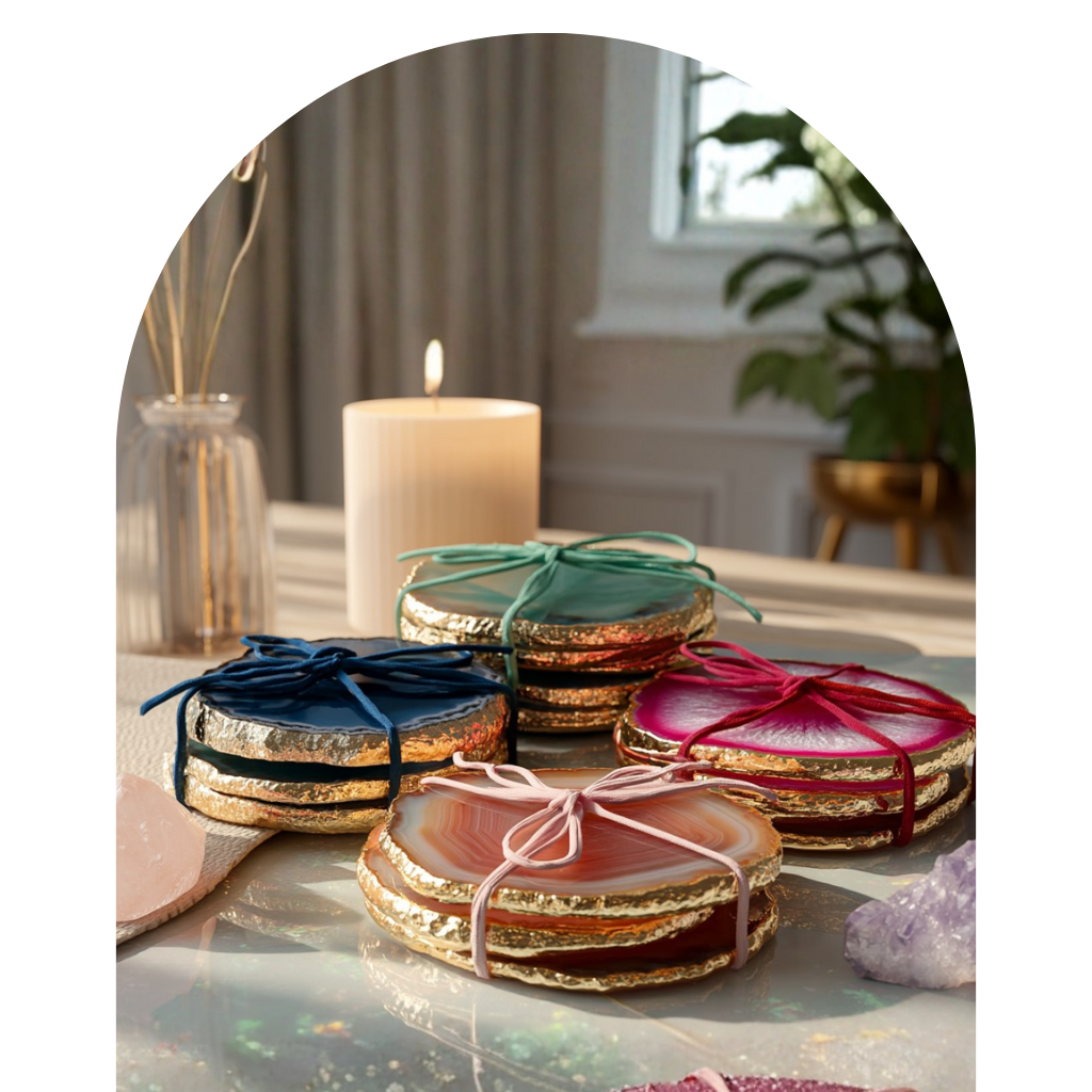 Our new Agate Slice Collection unveils the Earth’s quiet elegance: agate born from ancient layers, edged in liquid gold, capturing the soft rhythm of creation.