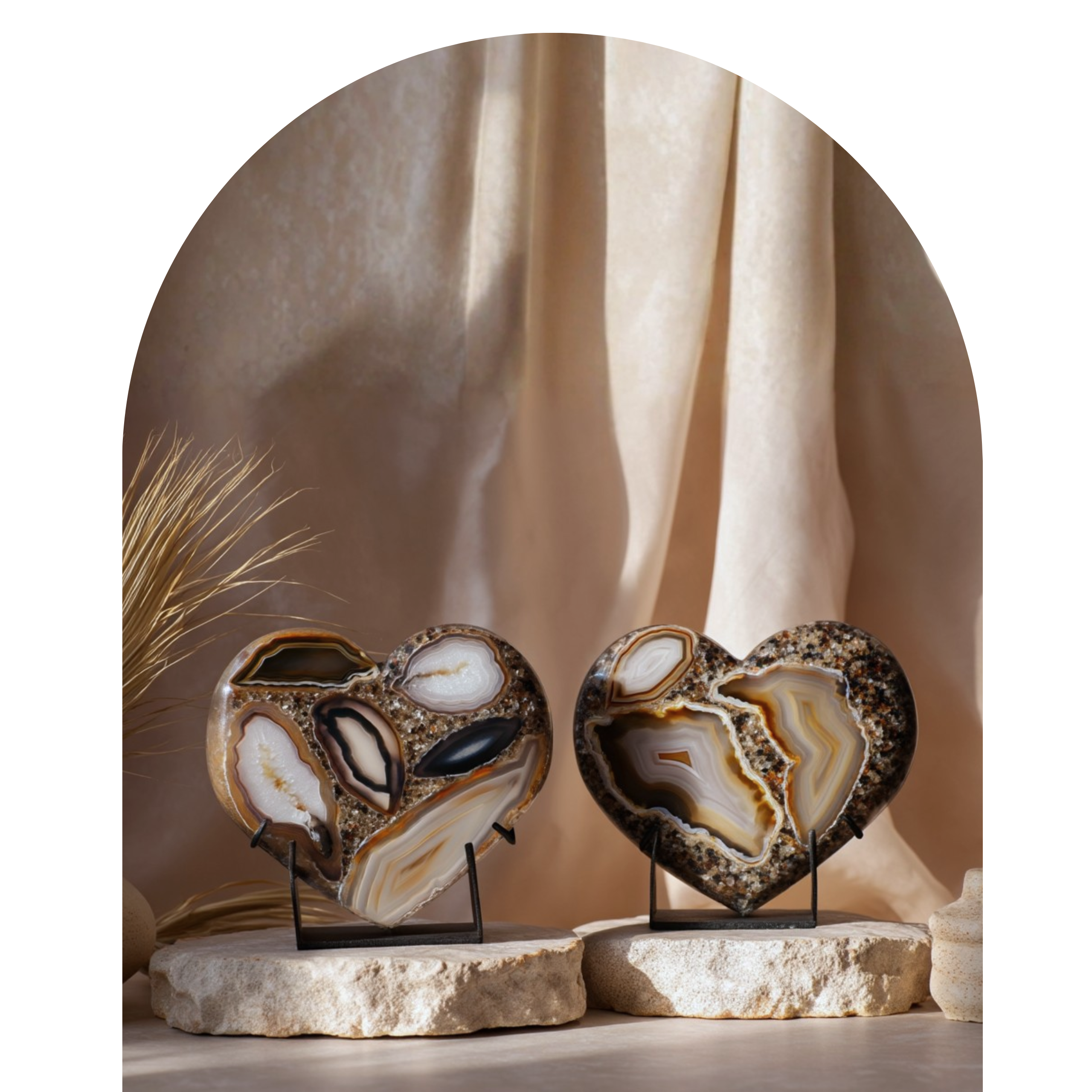 Our Agate Heart Collection embodies this truth: each heart sculpted from agate’s ancient layers, adorned with veins of light and shadow, a quiet testament to time and transformation.