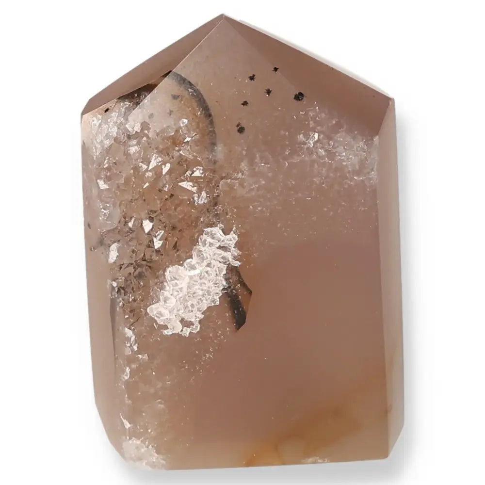 Ideal for meditation or as a sophisticated decorative piece, the Agate Geoded Points invite serenity and elegance into any space. They are perfect for connoisseurs of natural beauty, spiritual seekers yearning for harmony, or anyone looking to enhance their living environment with a touch of nature's grandeur. Each piece is a unique creation, ensuring that your collection will always be one-of-a-kind.