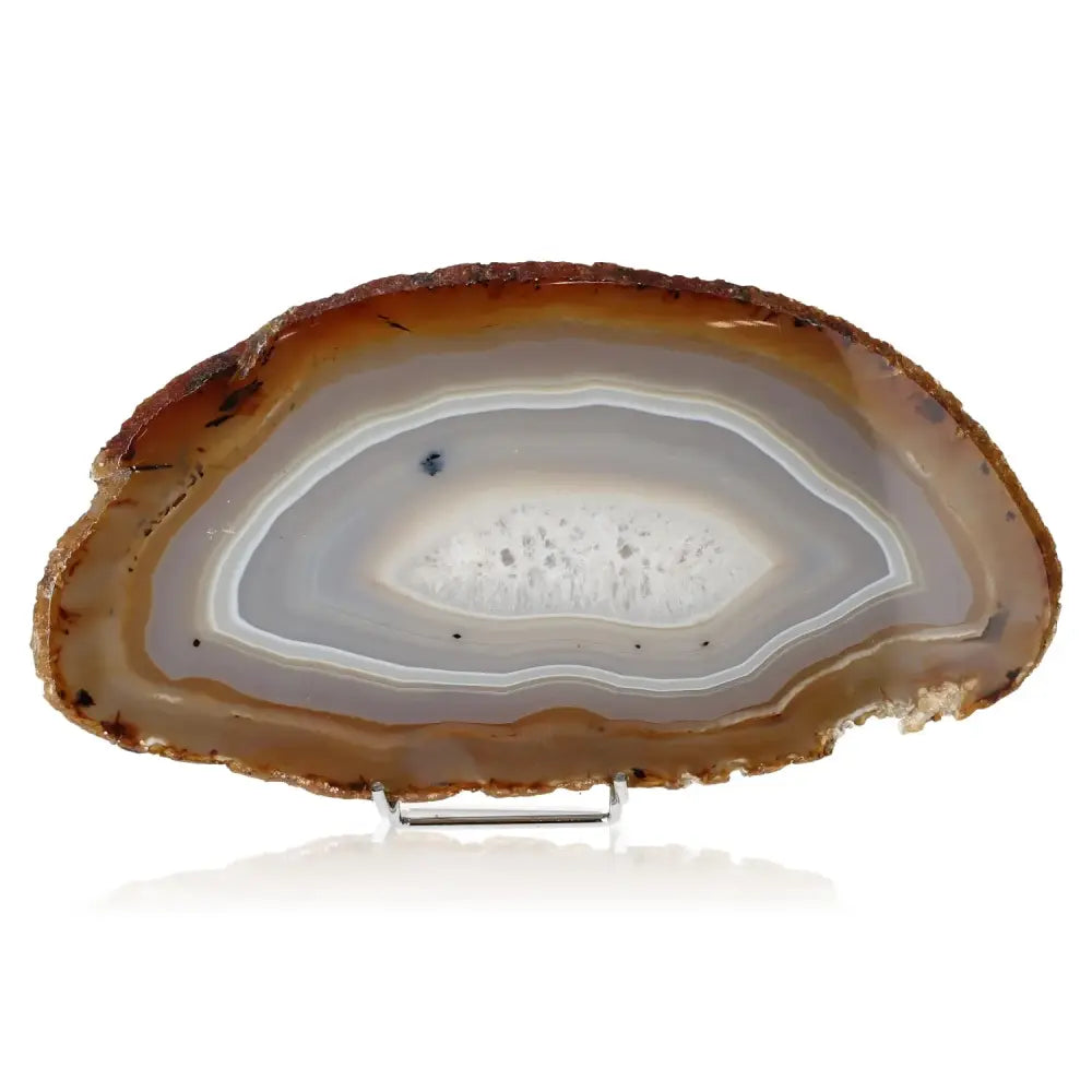 Care Instructions: To maintain the allure of your Polished Agate Slice, clean it gently with a soft, damp cloth to remove dust and fingerprints. Avoid the use of harsh chemicals or abrasive materials that could damage its polished surface. Store in a stable environment to protect it from extreme temperatures or humidity, ensuring its beauty endures for generations.