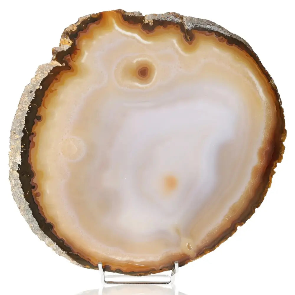 Introducing the Polished Agate Slice from Sylvia Crystals, a premium masterpiece meticulously handpicked from our distinguished suppliers. This extraordinary piece embodies the harmony of nature's beauty and emotional tranquility. Each slice, a unique expression of natural artistry, showcases captivating patterns and vibrant hues inherent to agate stones.