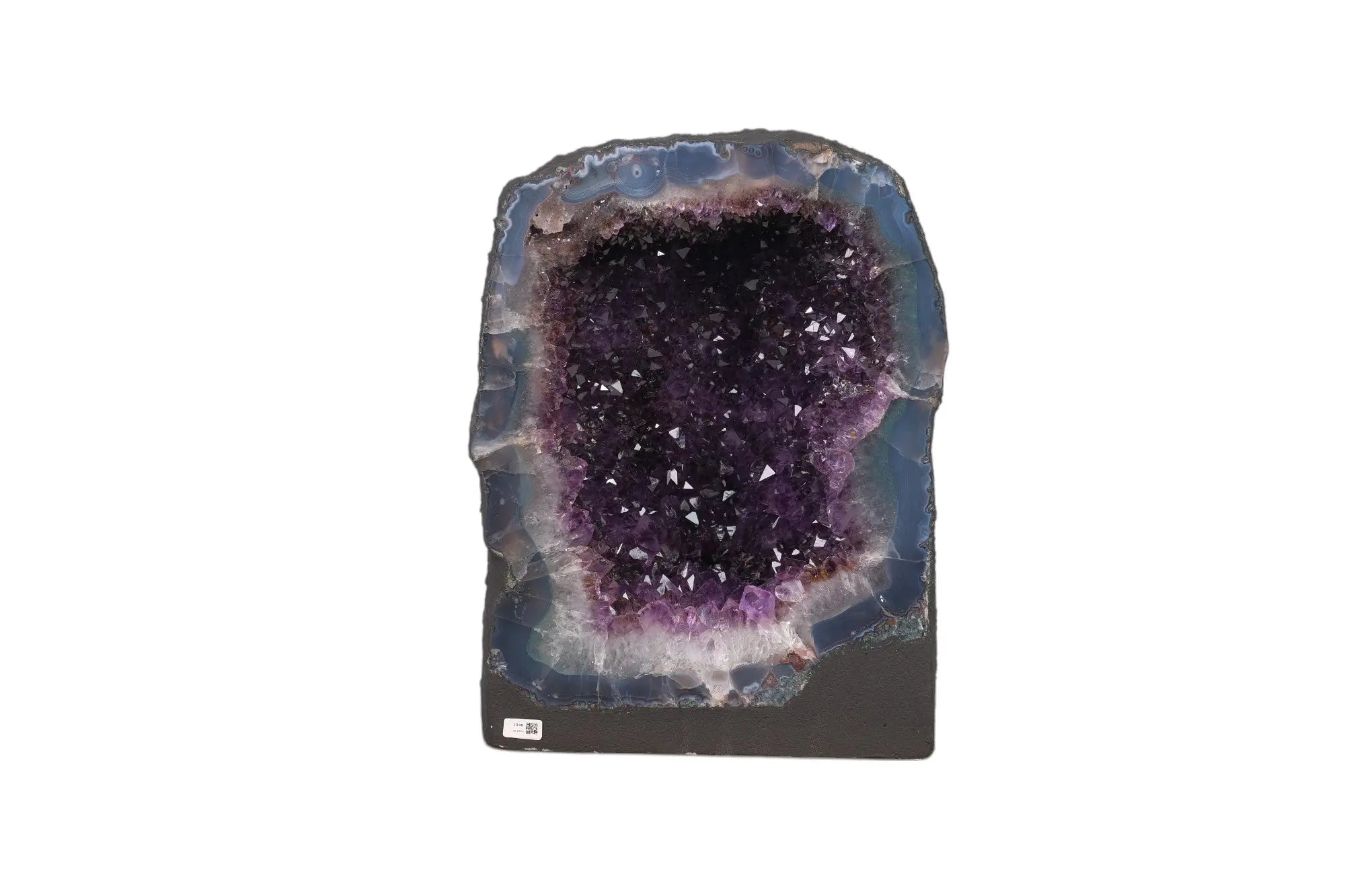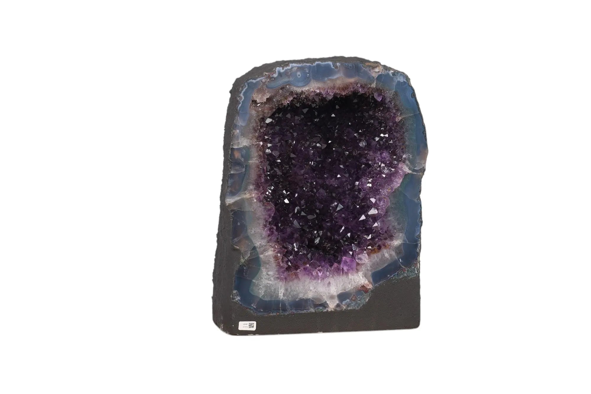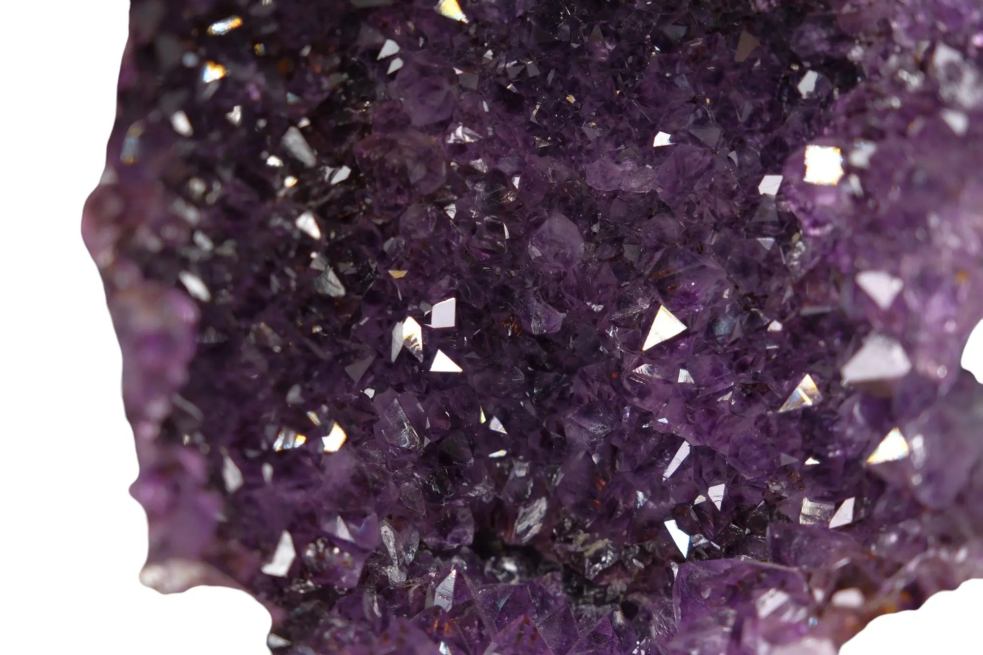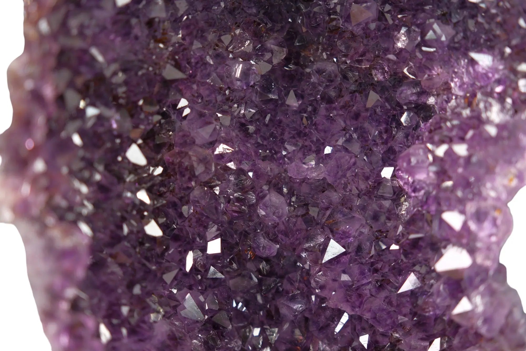 This Amethyst Cathedral features tall, arched formations lined with densely packed violet crystals. Its vertical structure and natural luster make it a breathtaking statement piece.