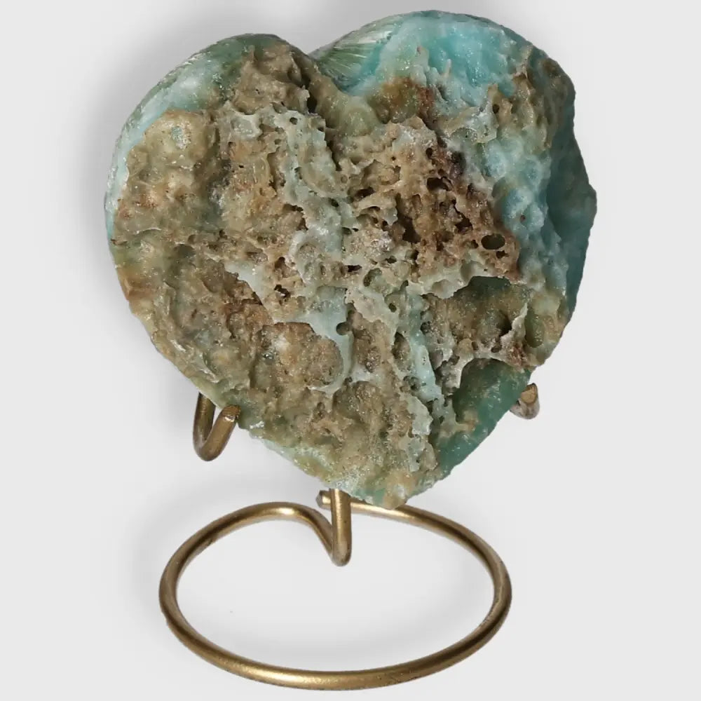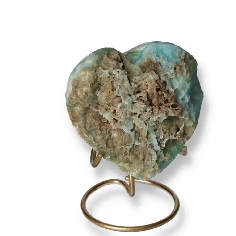 Authentic Blue Aragonite: Hand-selected for its vibrant blue tones and natural striations, this heart showcases the beauty and uniqueness of genuine blue aragonite.