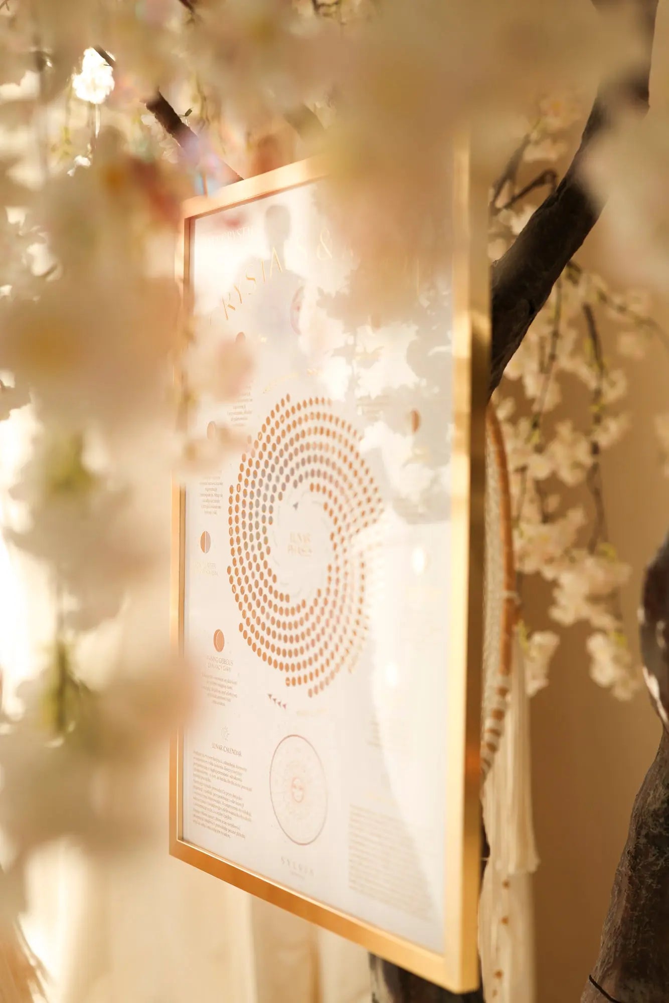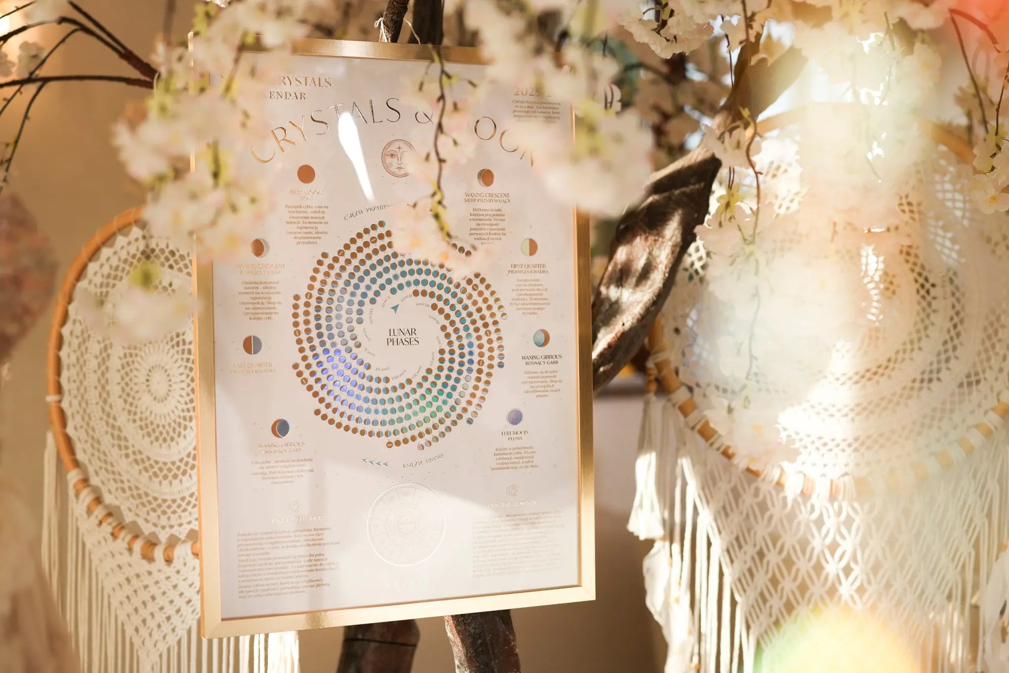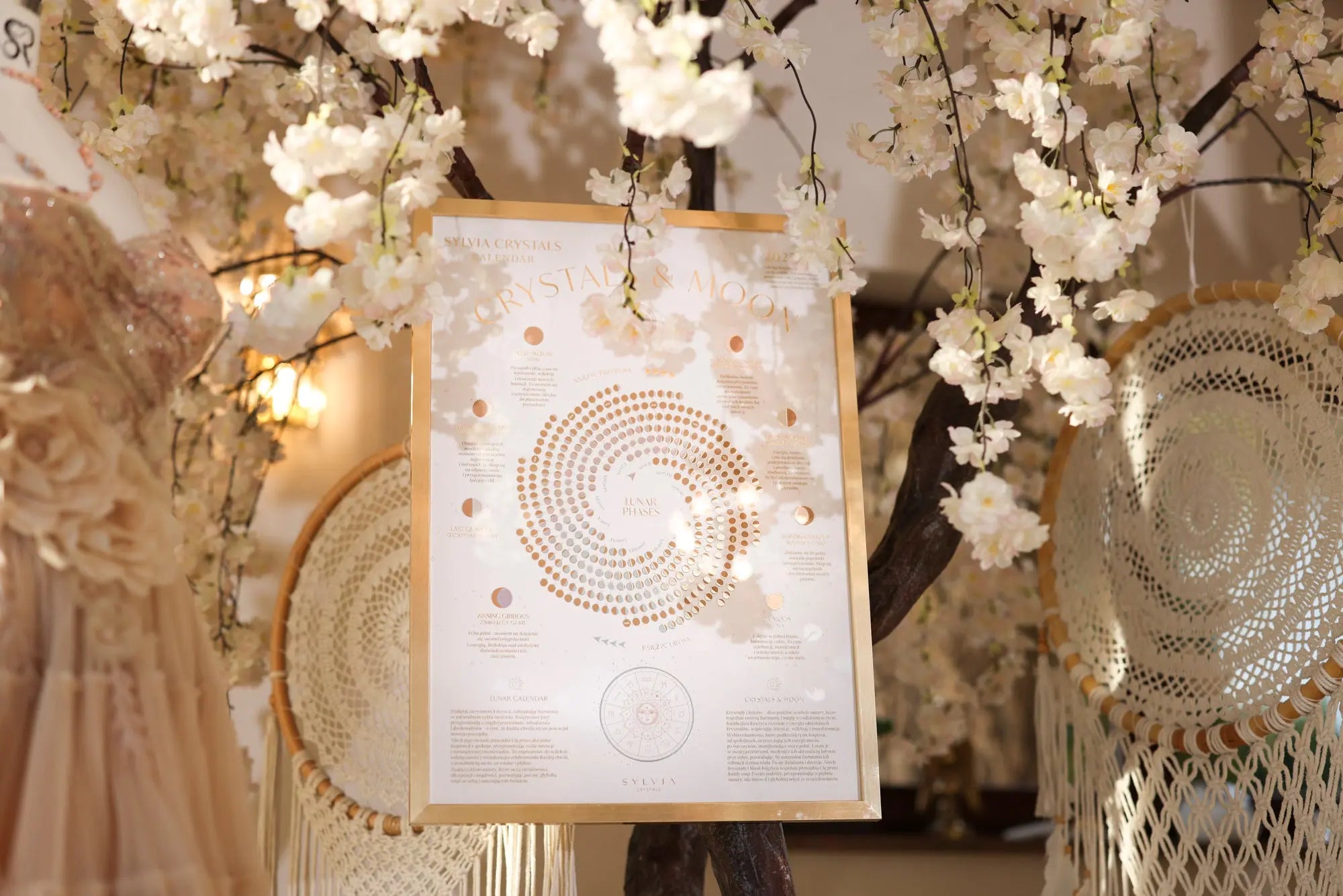 Designed with the highest attention to detail, the calendar features premium printing enhancements, including gold accents and holographic techniques, creating spectacular visual effects. The Moon phases subtly shift with light and perspective, making the calendar visually dynamic, ensuring it never looks the same throughout the day. Framed in a sturdy, gold A2 frame, it serves not only as a practical tool but also as an elegant interior decoration.