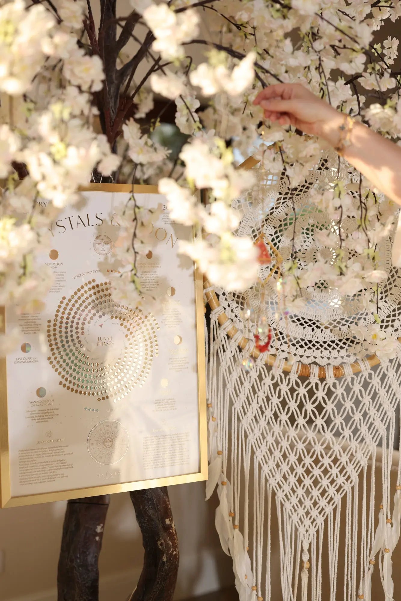 The “CRYSTALS & MOON” Lunar Calendar presents the repeating phases of the Moon, which cycle every 29.5 days, following the lunar year. This calendar starts in February 2025 and ends in January 2026. Inspired by the Chinese New Year, also known as the Spring Festival, which has been linked to the lunar calendar for centuries, this format symbolizes new beginnings, reflection, and setting intentions for the future. The date of the Chinese New Year shifts each year, falling on the second New Moon after the Winter Solstice. Crystals, long used in ancient Eastern traditions, aid in energy harmonization, meditation, and intention-setting. The “CRYSTALS & MOON” Lunar Calendar bridges these traditions with modern aesthetics, creating a connection between ancient rituals and contemporary spirituality.