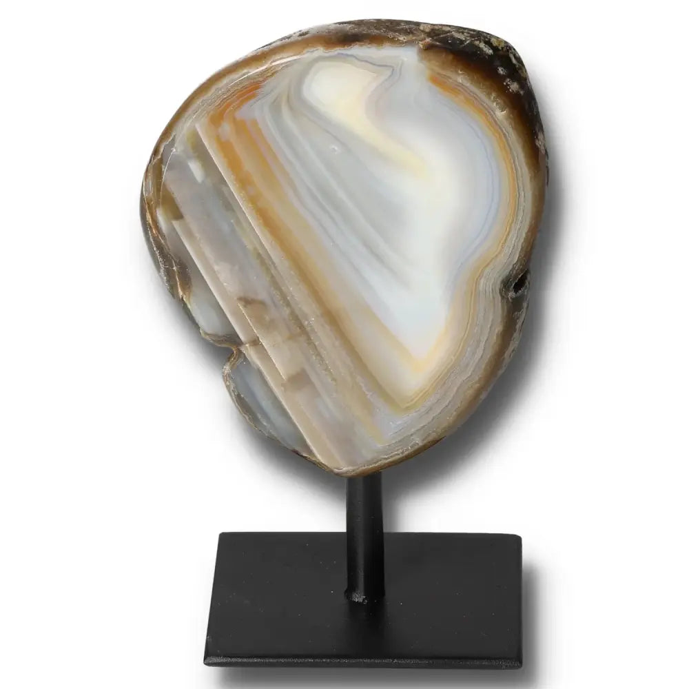 Embrace this unique creation as a symbol of stability and strength, ideal for meditation or simply as a comforting presence in your living space. Be part of the Sylvia community—celebrate the journey toward your best self and illuminate your soul with this captivating agate stone. Add the Polished Agate S on Metal Stand to your collection today and transform your environment into a sanctuary of beauty and spirituality.