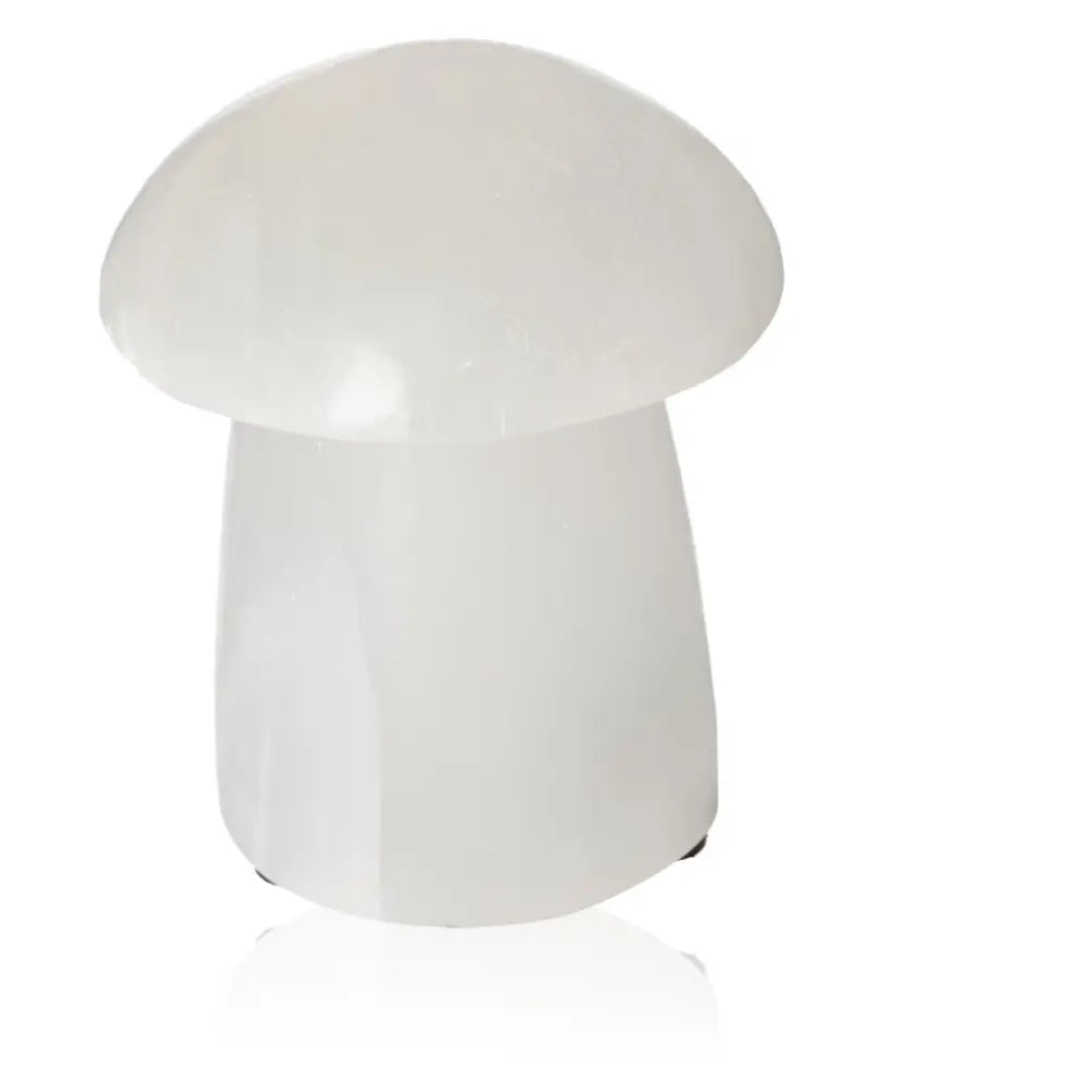 Selenite Mushroom Lamp 15cm - Whimsical crystal lamp for serene ambiance, crafted from genuine selenite in a charming mushroom shape.