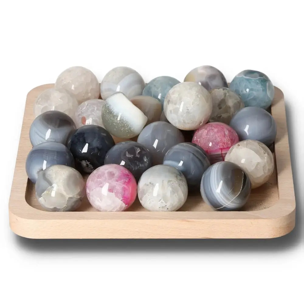 With its beautifully polished surface, the agate sphere offers a tactile and visual delight, captivating with its diverse patterns that mirror the natural harmony of crystals. Known for its ability to balance body, mind, and emotions, the agate sphere is a beacon of serenity, providing a grounding influence that enhances calmness and security.