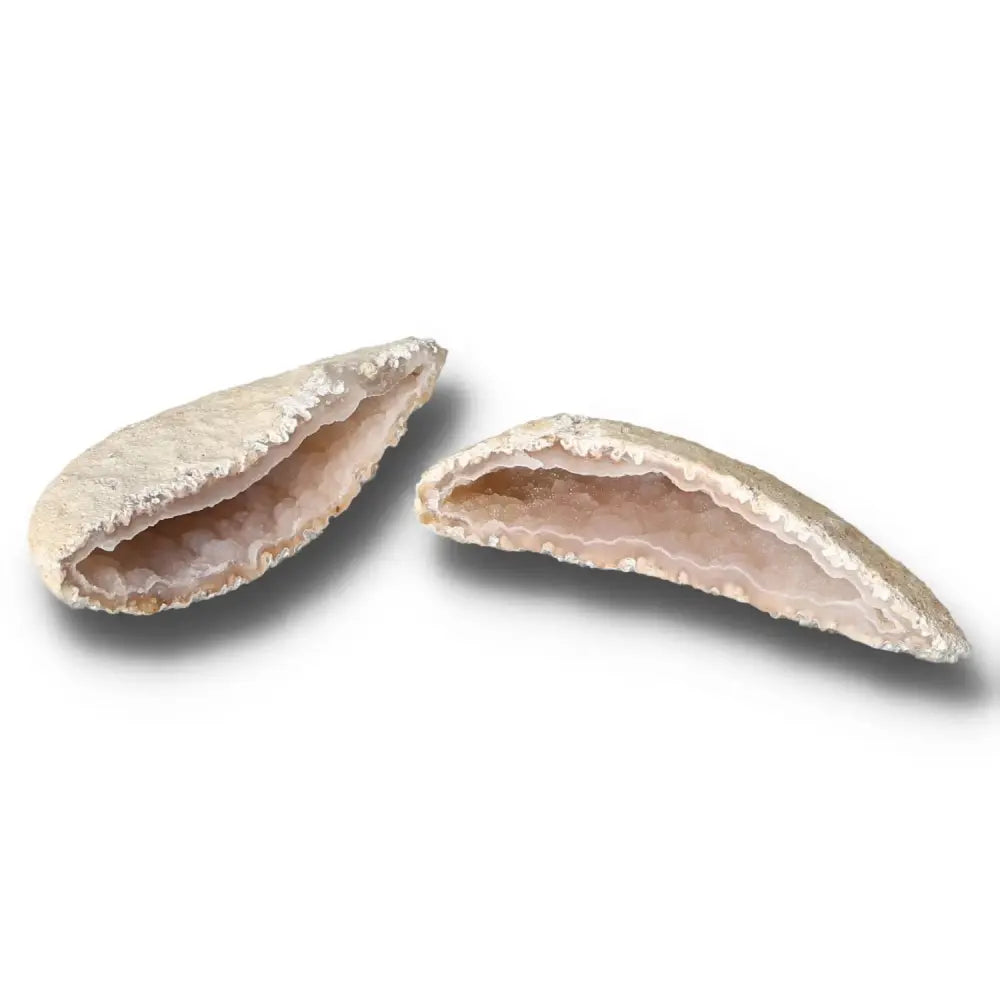 Enhance your sanctuary with the Natural Agate Geode Pair and let Sylvia Crystals guide you on a transformative journey of inner peace and aesthetic delight.